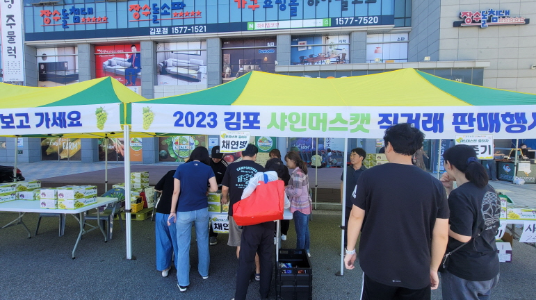 김포의 대표 농산물로 자리잡은 캠벨얼리 포도와는 수확적기가 2주이상 차이가 있는 샤인머스캣은 김포시포도연구회원들이 합심하여 18브릭스 이상 완숙된 상품으로 시중가보다 저렴한 가격에 판매했고, 샤인머스캣 농장을 알리기 위해 직접 발벗고 나와 홍보했다.