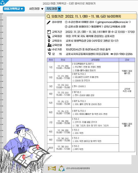 교육 대상: 마을 기록 및 지도 제작에 관심있는 김포시민